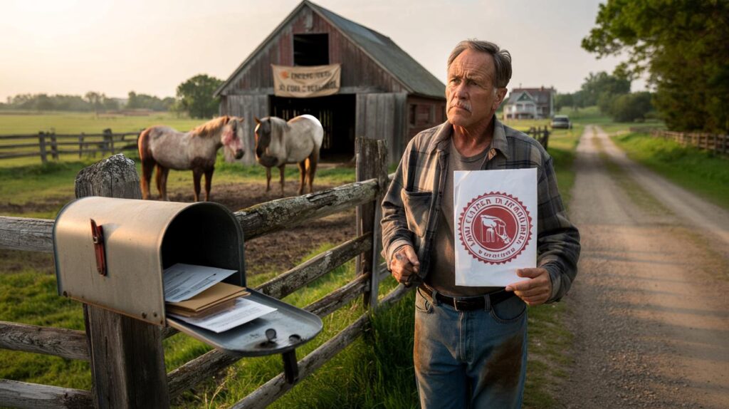 The mailbox at the end of his gravel drive holds the surprise that’s about to upend his life: a stiff white envelope from the county, stamped in red. “Notice of Violation – Unauthorized Agricultural Activity.”