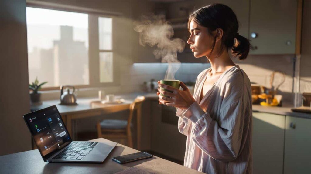 I’d get up, drink water, stretch for five minutes, make coffee slowly instead of like a barista in a fire drill. Sometimes I’d just stare out the window and let my brain boot up at its own speed.