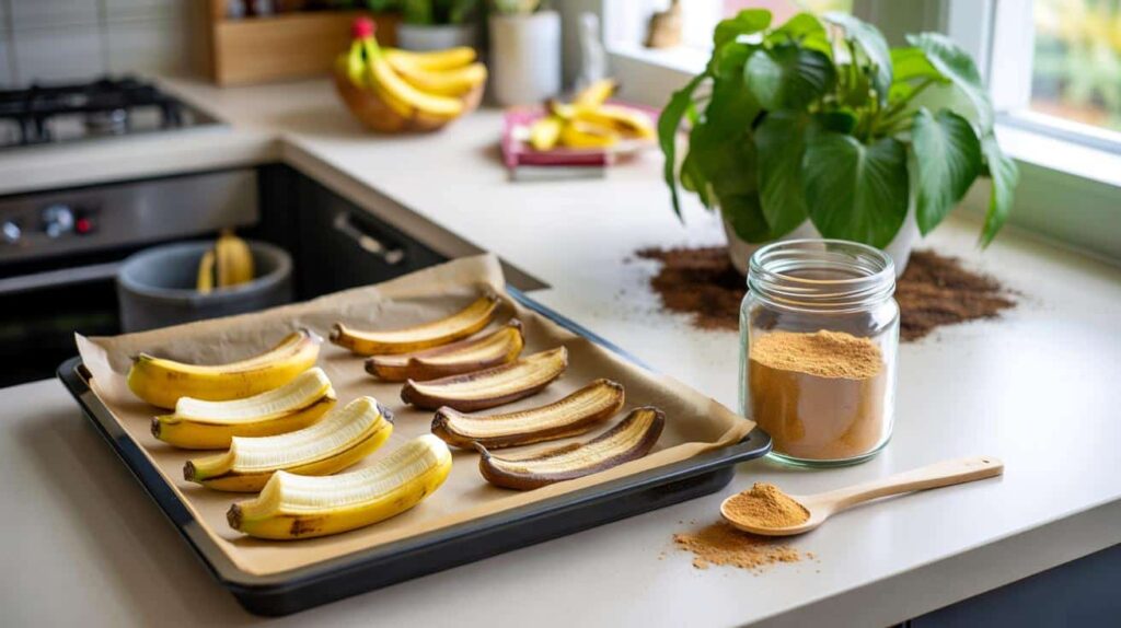 Here’s the version people are actually using on a Tuesday night, not the Instagram-perfect one. Preheat your oven to around 100–120°C (210–250°F). You want gentle heat, not roasting. While it warms up, rinse your banana peels under cold water, especially if the bananas weren’t organic. Pat them dry with a kitchen towel.
