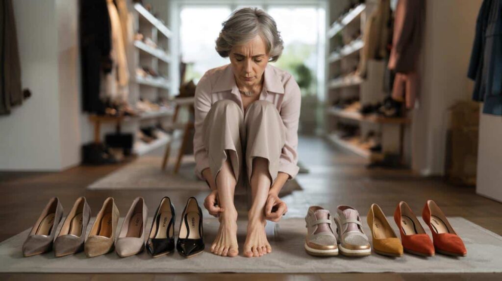 The most frequent mistake is stubbornness disguised as loyalty. We stay attached to a shape, a height, a brand, almost as if changing them would mean admitting “I’m getting old”. The heel that looked chic at 50 becomes a silent enemy at 65, but we keep it because it feels like part of our style.