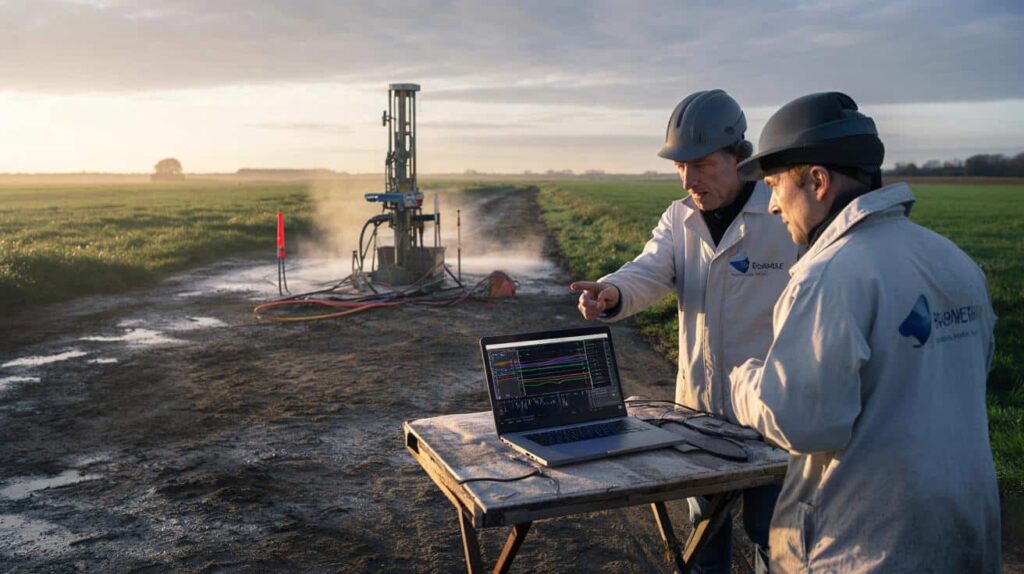 No wind turbines, no glittering solar panels. Just wet grass, a muddy track, and a small, humming rig drilling into the earth. Yet the laptop next to it is flashing strange readings – numbers that whisper something explosive: natural hydrogen, bubbling up from deep rocks, on a scale no one thought possible in Europe.